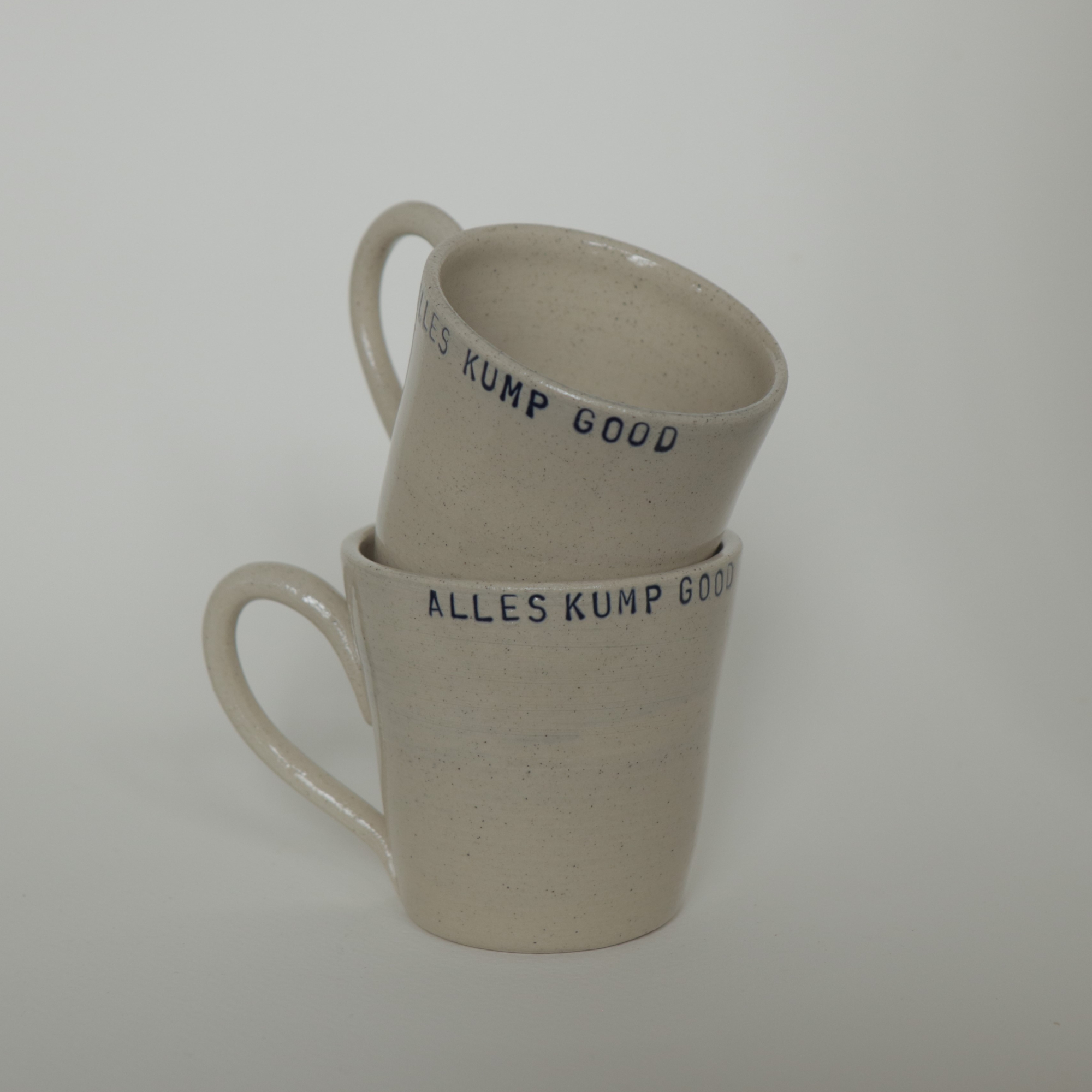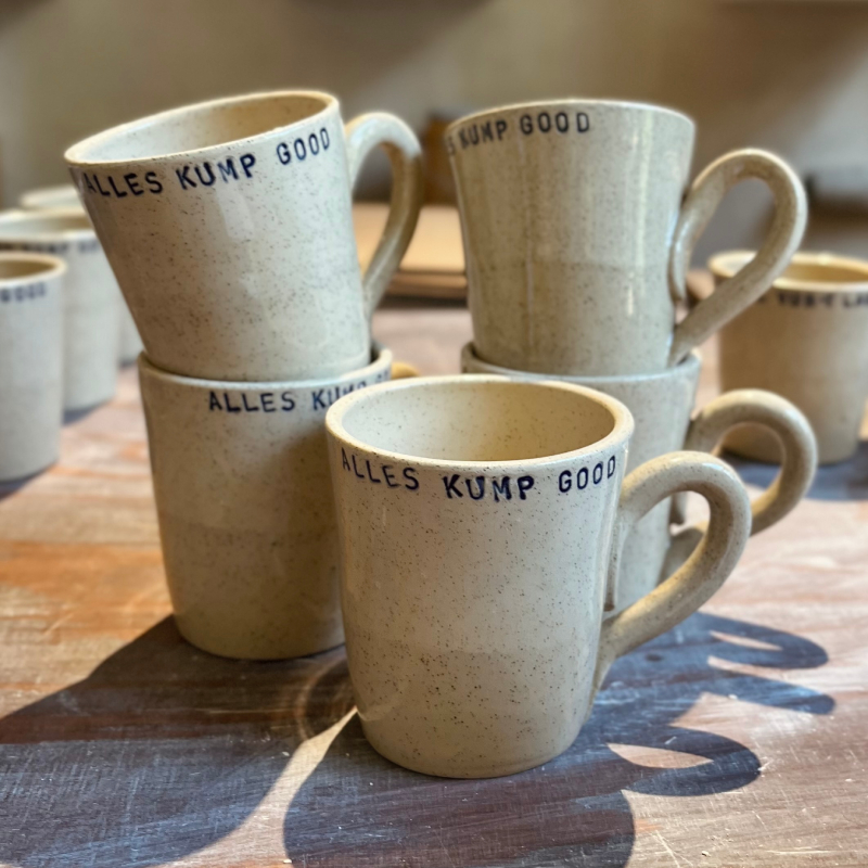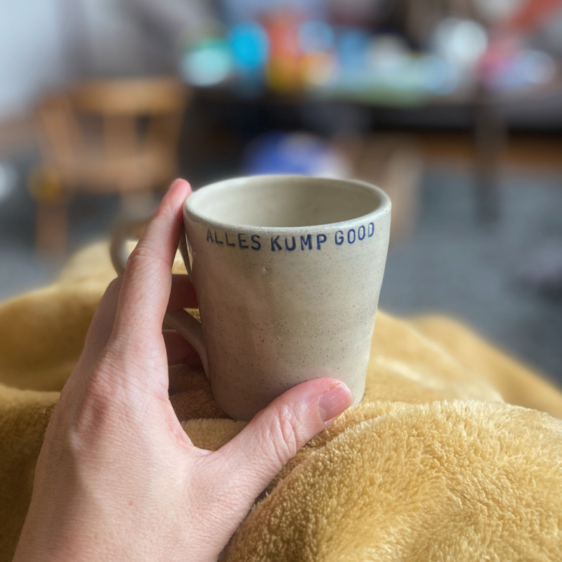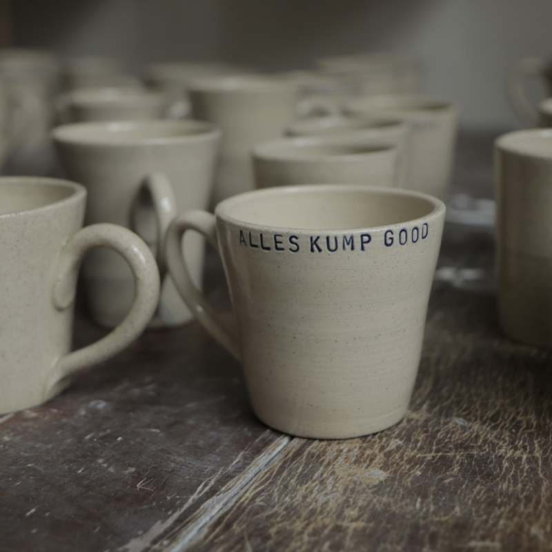 Keramiek koffiekopje met de tekst ‘Alles kump good’.