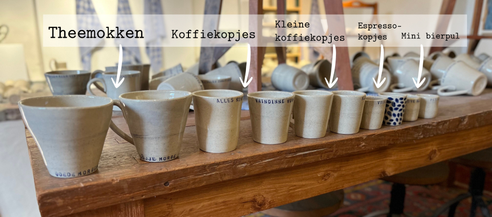 Alles wordt met de hand gemaakt, dus elk product is uniek. De grootte van de producten kan daarom variëren.