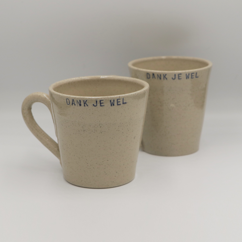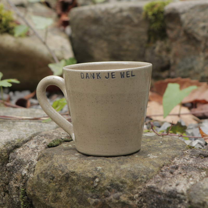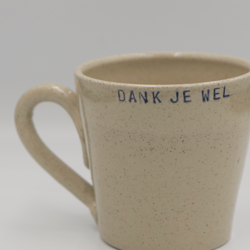 Keramiek kopje met de tekst ‘Dank je wel’.