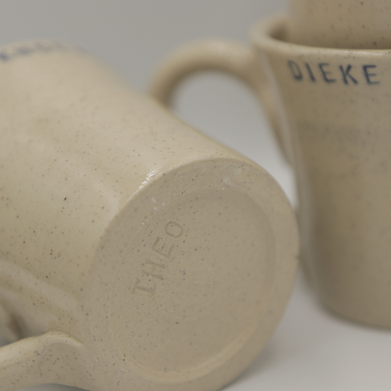 Keramiek kopje met de tekst ‘Dieke knoevel’.