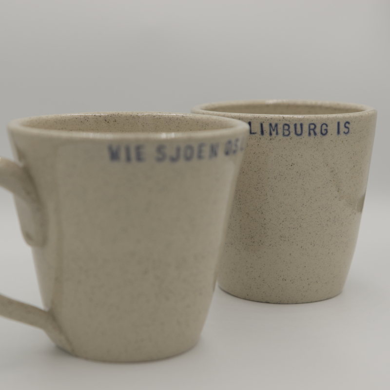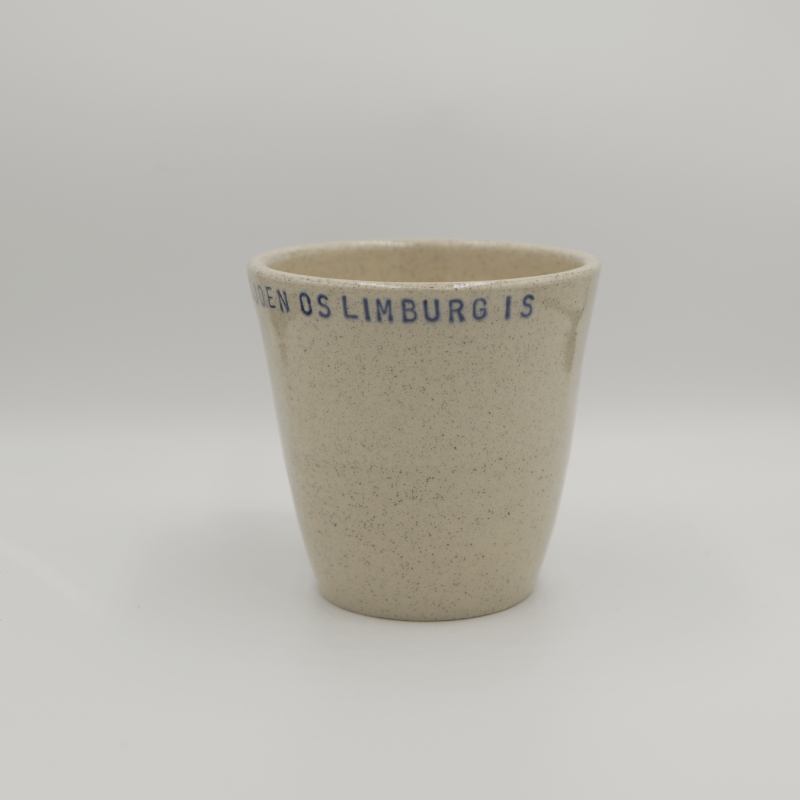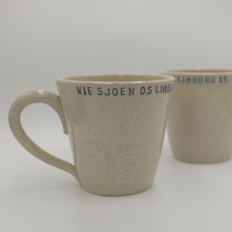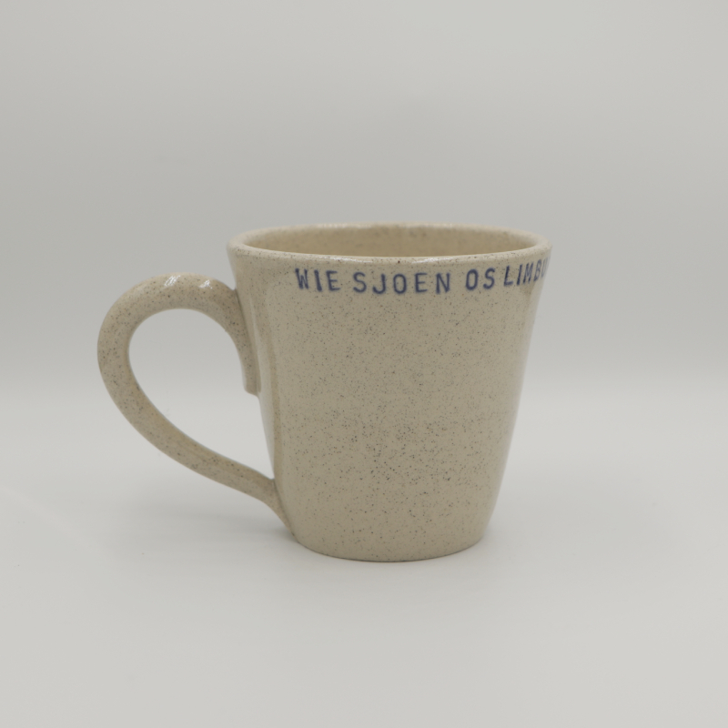 Koffiekopje van keramiek met de tekst ‘Wie sjoen os Limburg is’.